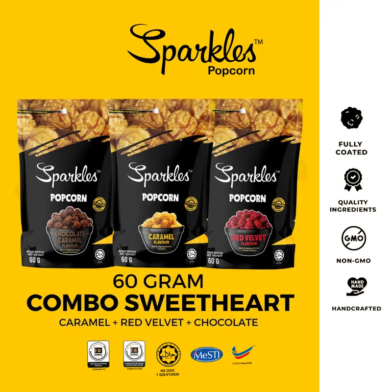 SPARKLES POPCORN SPECIAL COMBO lebih menjimatkan dan adalah pilihan yang tepat untuk anda yang ingin menikmati pengalaman snek yang menyenangkan. Kombinasi rasa unik yang ditawarkan oleh SPARKLES POPCORN SPECIAL COMBO akan memanjakan lidah anda. Anda akan dapat merasakan keunikan rasa yang berbeza pada setiap gigitannya.